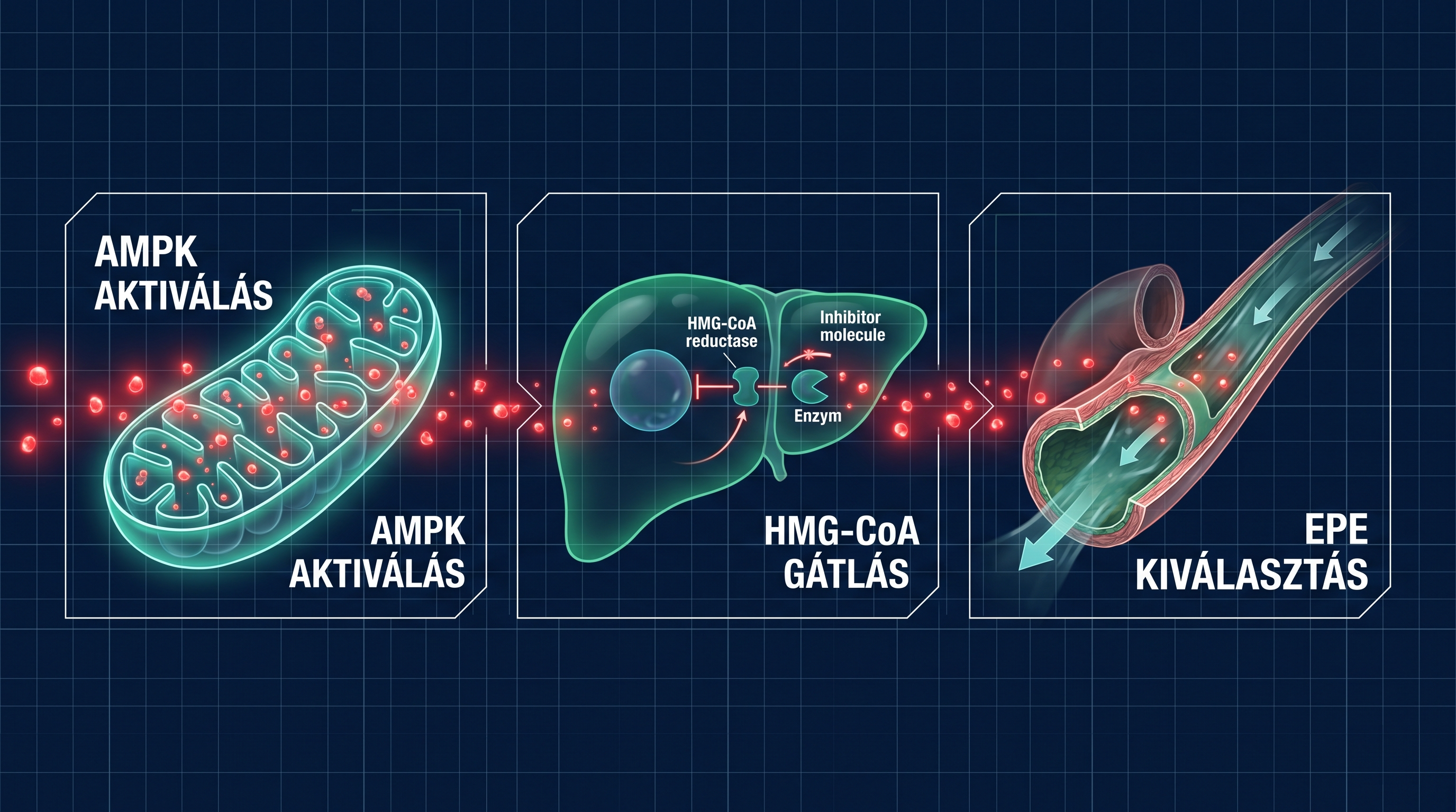 A chili vérzsírprofilra gyakorolt hatása nem egyetlen folyamaton, hanem legalább három párhuzamos mechanizmuson keresztül érvényesül. Az első a zsírsejtek anyagcseréjének befolyásolása. A kapszaicin aktiválja az AMPK-t – egy olyan enzimet, amelyet a sejt energiaérzékelőjeként is szoktak emlegetni. Amikor az AMPK bekapcsol, a szervezet inkább energiát éget zsírból, mint hogy új zsírt raktározzon. Ez közvetlenül csökkenti a vérben keringő trigliceridek szintjét, hiszen kevesebb zsír kerül tárolásra, és több használódik el energiaként.A második mechanizmus a máj koleszterinanyagcseréjéhez kapcsolódik. A kapszaicin gátolja a HMG-CoA reduktáz enzimet – ezt az enzimet egyébként a sztatinok, a legszélesebb körben használt koleszterincsökkentő gyógyszerek is gátolják, csak jóval erőteljesebben. Ez magyarázhatja az összkoleszterin mért csökkenését: a máj kevesebb koleszterint termel, ha a kapszaicin jelen van. A harmadik terület az epe szerepe: a kapszaicin fokozza az epe kiválasztását, ami elősegíti az étrendi zsírok lebontását és csökkenti a véráramba kerülő koleszterin mennyiségét.