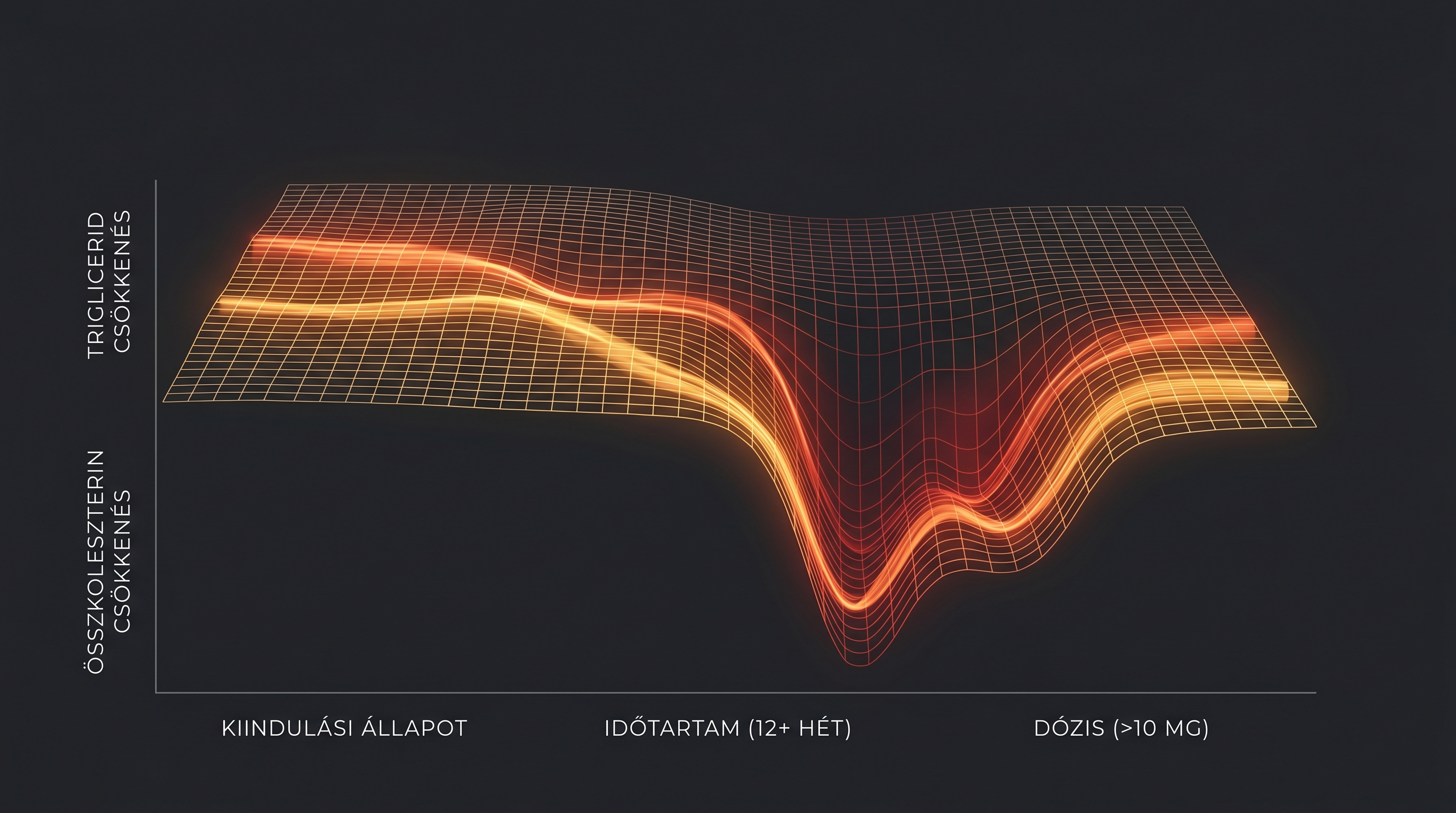 - Kiindulási állapot: magas triglicerid- vagy koleszterinszint esetén a csökkenés mértéke nagyobb.
